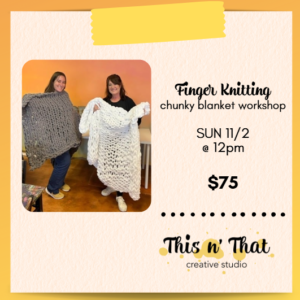 Chunky Blanket Workshop Chunky Knit Blanket Workshop Indulge in an afternoon of cozy creativity ... 02 Nov 12:00 pm - 3:00 pm