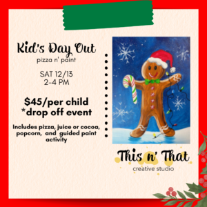 Kids Day Out Paint n’ Pizza Kids Day Out: Paint n' Pizza Drop the kids off for ... 13 Dec 2:00 pm - 4:00 pm This 'n' That Creative Studio1066 S. Pantano Rd, Tucson, AZ 85710