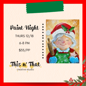 December Paint Night Join us for a cozy and creative evening at This ... 18 Dec 6:00 pm - 8:00 pm This 'n' That Creative Studio1066 S. Pantano Rd, Tucson, AZ 85710