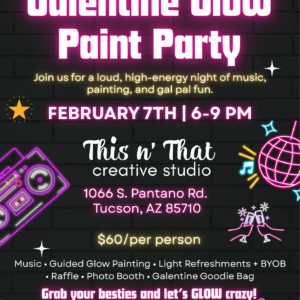 Galentine GLOW Party Join us for a high-energy Galentine Glow Party featuring guided ... 07 Feb 6:00 pm - 9:00 pm This n' That Creative Studio