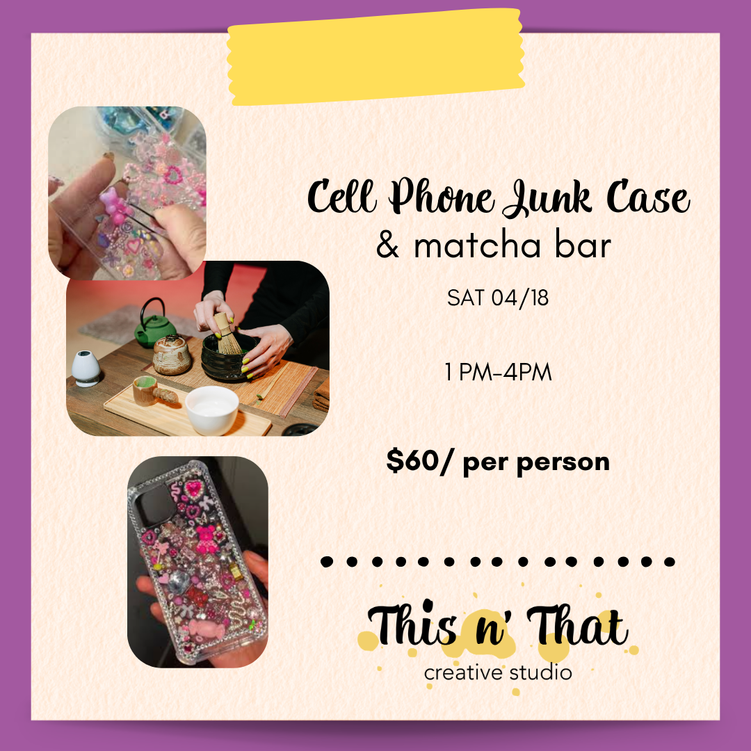 Get creative and trendy at our Cell Phone Junk Case Workshop! Design and decorate your own custom phone case using charms, textures, and resin finishing techniques.