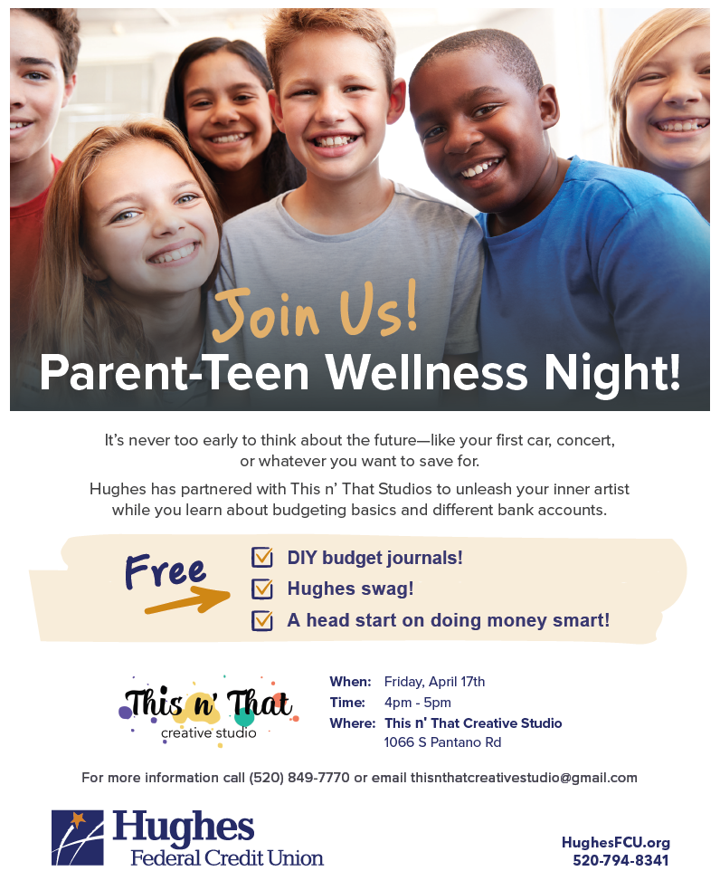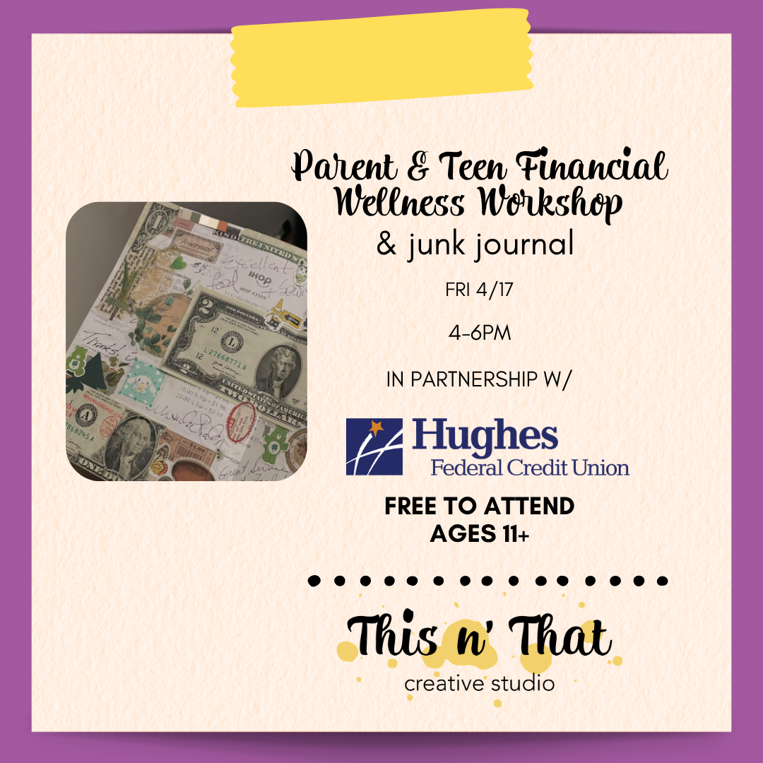 Join us for a meaningful and creative Financial Wellness Workshop in partnership with Hughes Federal Credit Union.